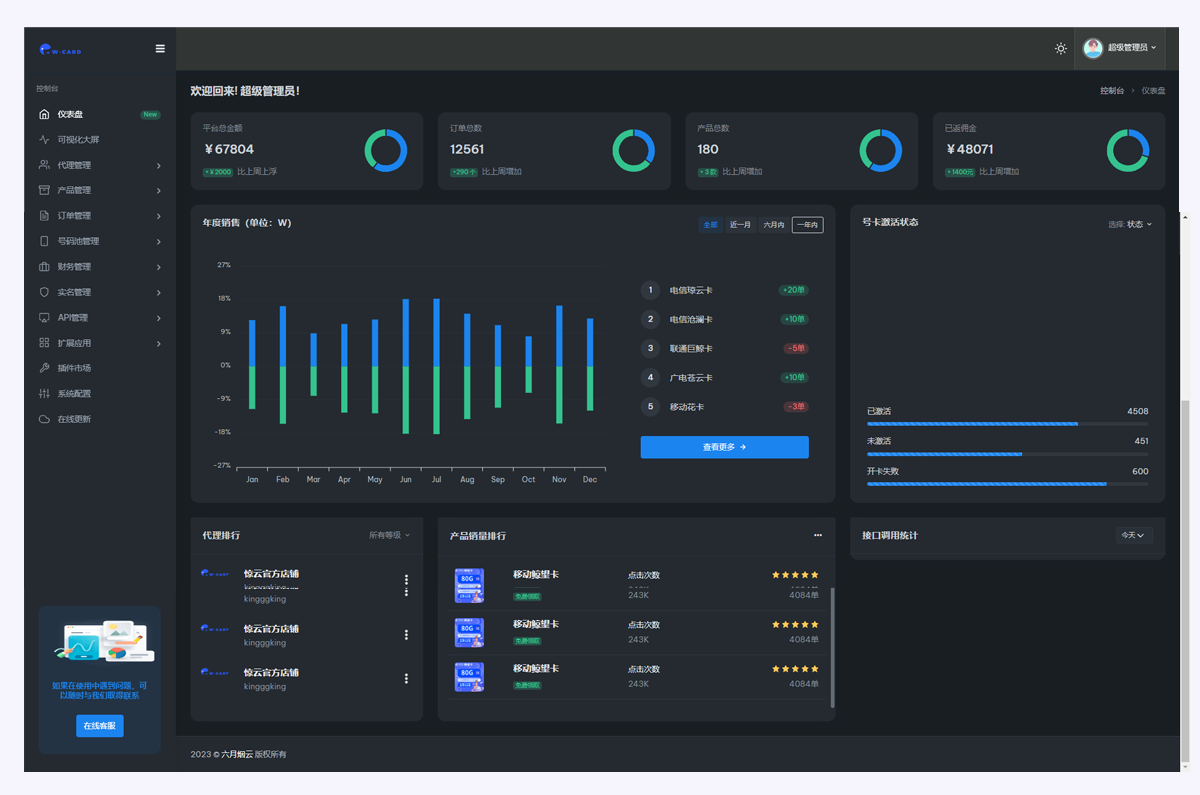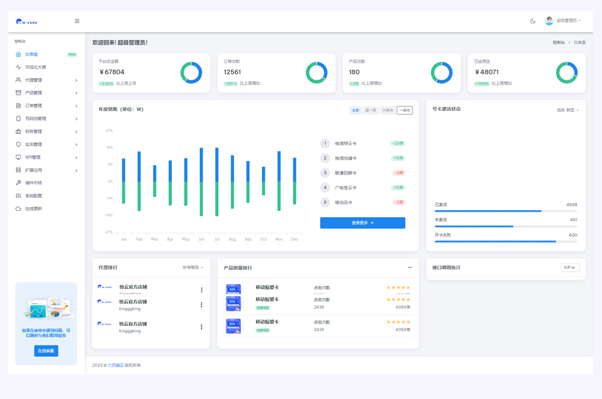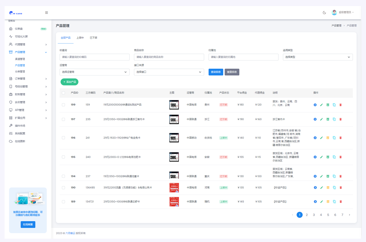 使用号卡掌柜系统,轻松管理代理商品,对接上下游,对接运营商!
